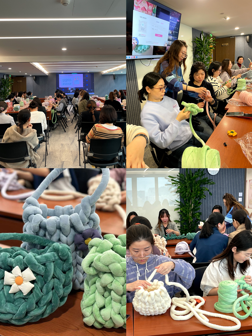 ??一場充滿溫暖與創(chuàng)意的編織之旅伴隨著東方國科女職工開展的“物盡其用,編繩暖心”主題活動(dòng)悄然展開。女職工們?cè)诹私饬吮鶏u粗毛線的特點(diǎn)及編織技巧后,按照步驟不停地將毛線在手中翻動(dòng),完成了編、織、串、粘等一系列動(dòng)作,感受了慢工細(xì)作的治愈力量,傳遞了綠色低碳的生活理念。一個(gè)個(gè)被精心制作而成的編織包裝點(diǎn)了明媚春光,一份份勤儉低碳的理念在指尖綻放。