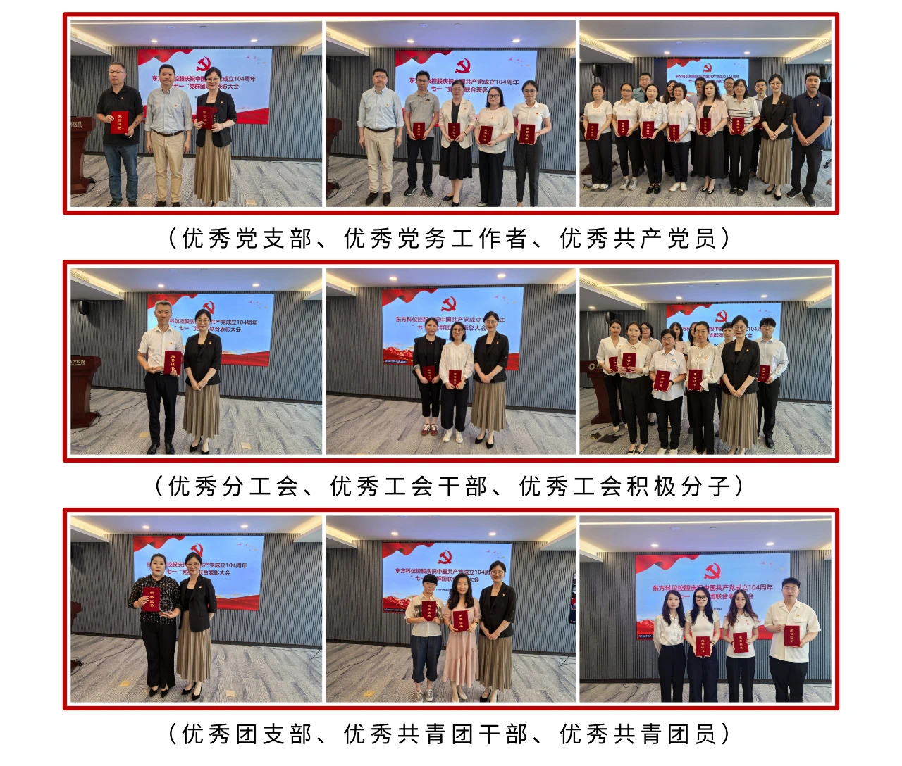 ??隨后,東方科儀控股開展慶祝中國(guó)共產(chǎn)黨成立104周年“七一”黨群團(tuán)聯(lián)合表彰,孫福權(quán)等12名同志獲得“優(yōu)秀共產(chǎn)黨員”稱號(hào),劉少鋒等4名同志獲得“優(yōu)秀黨務(wù)工作者”稱號(hào),集團(tuán)總部黨支部、東方國(guó)科黨支部獲得東方科儀控股“優(yōu)秀黨支部”稱號(hào);張露嘉等9名同志獲得“優(yōu)秀工會(huì)積極分子”稱號(hào),陳維等2名同志獲得“優(yōu)秀工會(huì)干部”稱號(hào),集團(tuán)總部分工會(huì)獲得“優(yōu)秀分工會(huì)”稱號(hào);白雪等3名同志獲得“優(yōu)秀共青團(tuán)員”稱號(hào),張琳等2名同志獲得“優(yōu)秀共青團(tuán)干部”稱號(hào),東方中科團(tuán)支部獲得“優(yōu)秀團(tuán)支部”稱號(hào)。