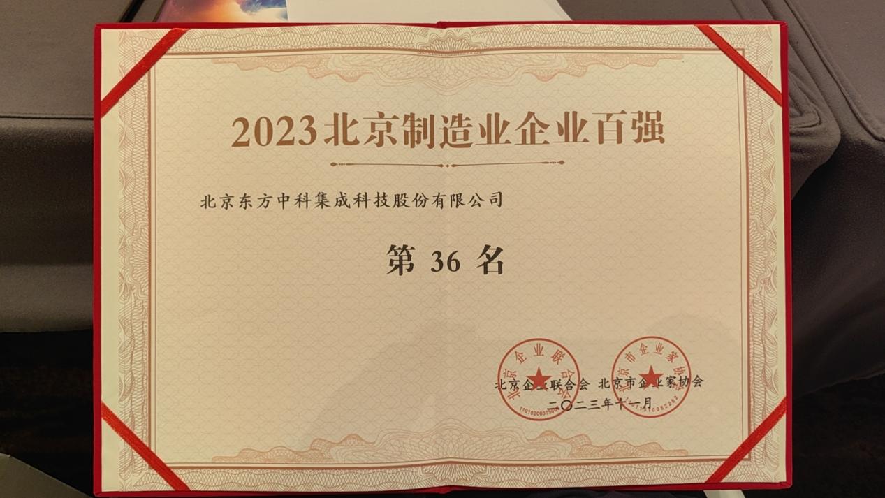 東方科儀控股成員企業(yè)東方中科入圍“2023京津冀制造業(yè)企業(yè)百?gòu)?qiáng)”榜單